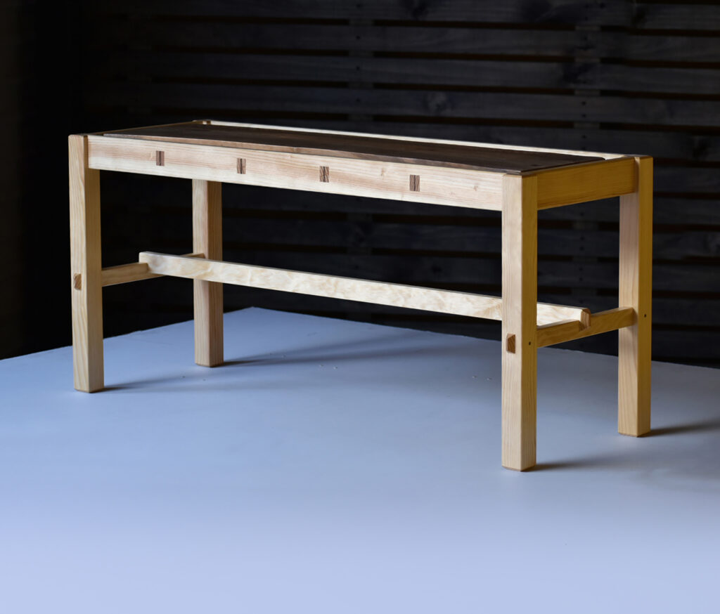 Cada unión visible, cada espiga pasante, cada ranura, cada cuña, revela las decisiones tomadas y el respeto por la materia. En ese instante la banca revela su desnudes, porque no tiene nada que esconder.