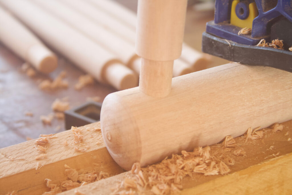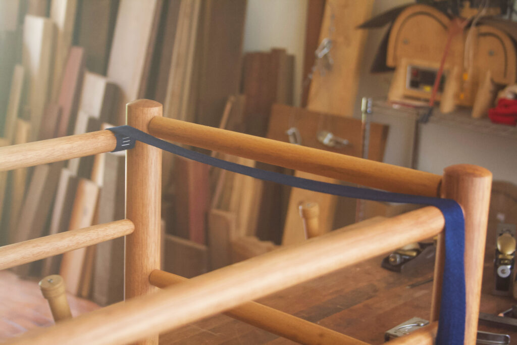 Por otro lado, las uniones de las sillas deben ser muy ajustadas y requieren trabajo para asentarlas. Las prensas son más seguras y, a veces, la única opción; en ocasiones, el mazo es el camino. Básicamente, querrás que la unión esté lo más ajustada posible antes de que la madera se parta. Una vez que el pegamento se introduce en la mortaja, empezará a contraerse, lo que hace más difícil introducir el travesaño. A veces, la unión se congela. Da golpes secos y fuertes con el mazo de madera hasta que el hombro del travesaño toque la pata.